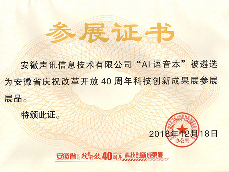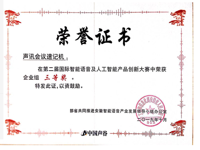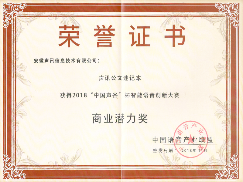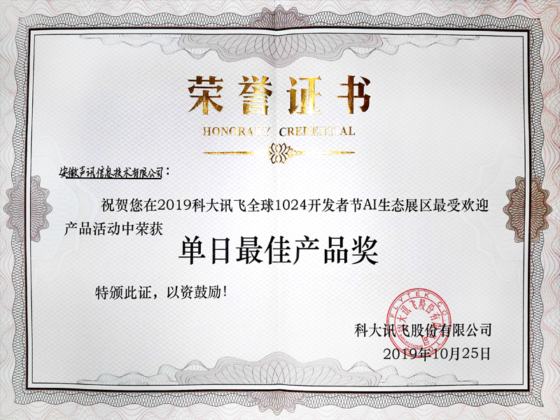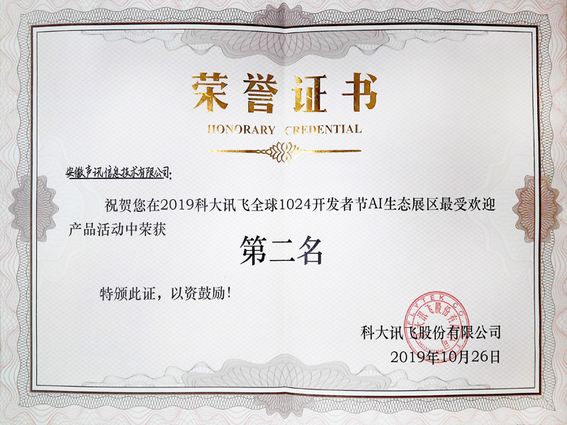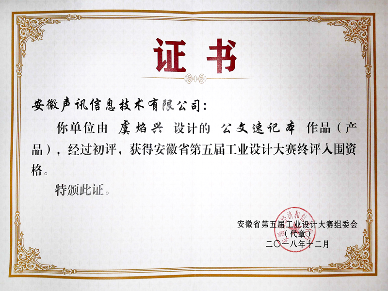 荣获科大讯飞1024开发者节AI生态展区最受欢迎产品活动第二名 1024单日最佳产品奖 一带一路创新设计榜院士推优计划百强奖201912 中国信息消费推进联盟年度优秀成员单位201911 首届国家高新区微视频大赛优秀奖201911 荣获科大讯飞未来可期新星合作伙伴称号201911 合肥高新区雏鹰企业201911 第二届国际智能语音及人工智能产品创新大赛三等奖 AI语音本被评为安徽省庆祝改革开放40周年科技创新成果20181218 智能会议速记机或安徽省第五届工业设计大赛终评入围资格20181214 声讯公文速记本荣获2018中国声谷杯智能语音创新大赛商业潜力奖2018111 虞焰兴荣获合肥市金牌职工荣誉称号201851 浏览