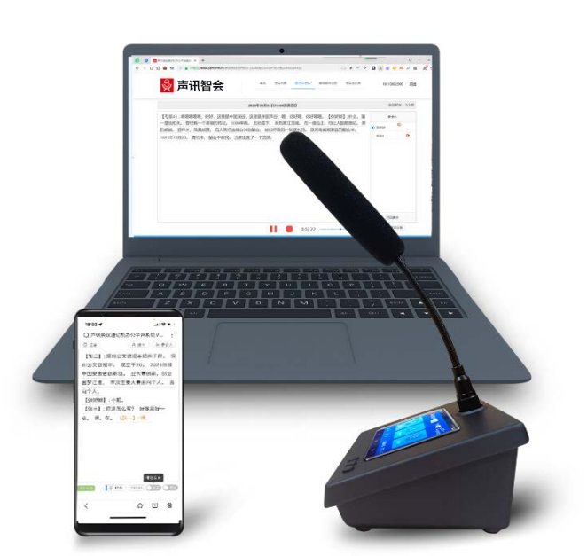 声讯智会是一款集成手机APP、智能麦克风、电脑网页的远程组网会议工具,实现智能会议麦克风主持或者参与各类线上线下会议,实现智能会议速记、角色分离、远程参会、异地发言、智能调音、远程编辑、文字实时直播、现场投屏、文稿分享、智能降噪、智能会议纪要等功能。